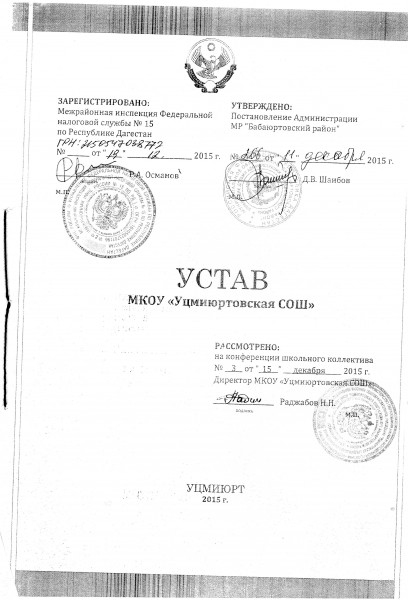 | Полное наименование образовательной организации* | Муниципальное казенное общеобразовательное учреждение «Уцмиюртовская средняя общеобразовательная школа» |