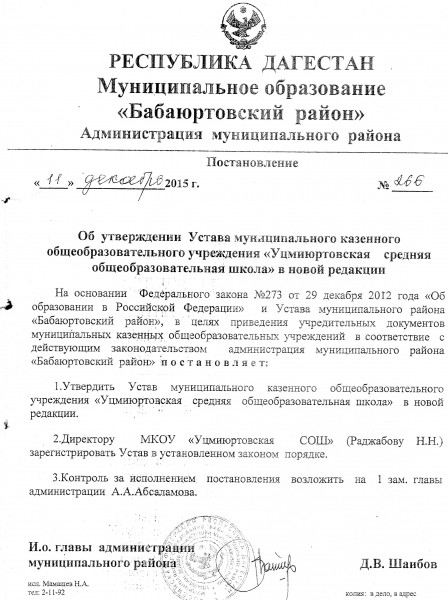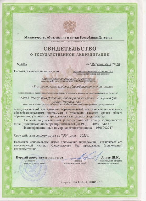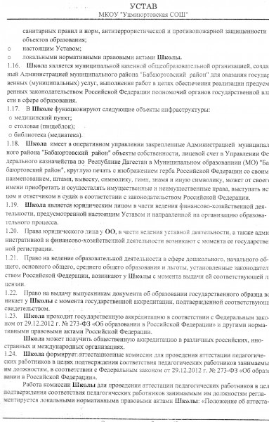 | Адрес местонахождения образовательной организации* | /368065, Республика Дагестан, Бабаюртовский район, с. Уцмиюрт ул. Омарова №13 |